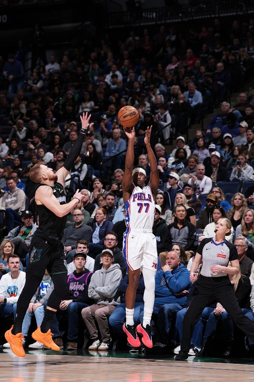 戈贝尔禁赛!马克西39+8助攻76人大胜森林狼 华子28+9